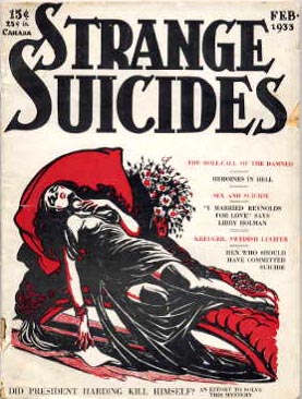 | 備考 | ■大恐慌下の自殺ブームに便乗、自殺した有名人の逸話や自殺を扱った文芸作品の紹介など、古今東西の自殺に関する記事・読物を満載した自殺専門パルプ。 ■売れ行き不振で雑誌そのものが自滅。ご愁傷さまでした。 |